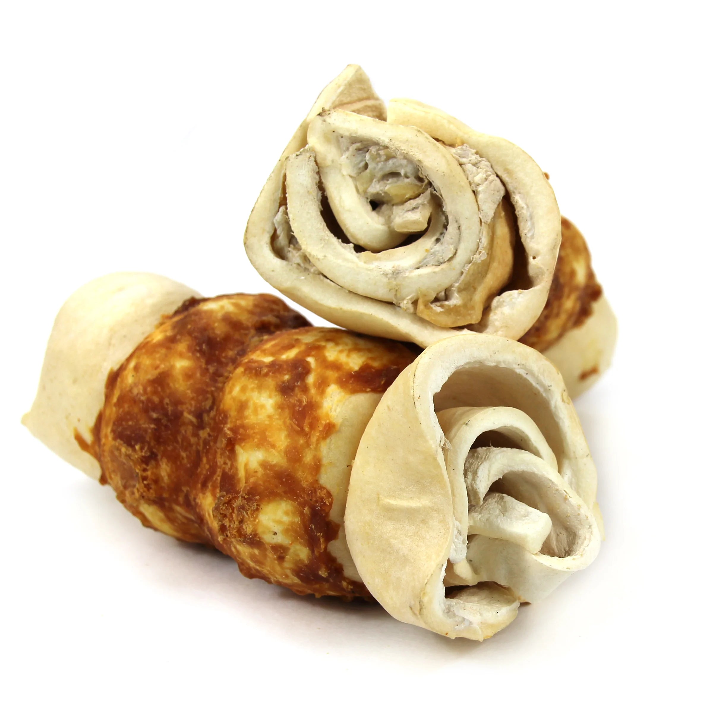 Every beef cheek roll is basted with real chicken to enhance flavor and encourage engagement, making it an excellent option for picky chewers.